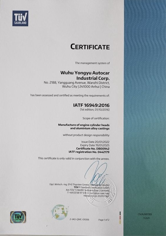 汽車鋁合金氣缸蓋 · 鋁鑄件專業(yè)制造商 鋁合金氣缸蓋行業(yè)標(biāo)準(zhǔn)制定者 股票簡稱:永裕股份 股票代碼:839561
