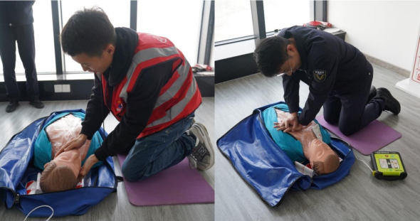 在心肺復(fù)蘇現(xiàn)場實操過程中,參訓(xùn)員工嚴格按照從現(xiàn)場環(huán)境安全評估、判斷意識心跳呼吸,到胸外按壓、開放氣道、人工呼吸的流程反復(fù)練習(xí),確保動作標準、力度到位。