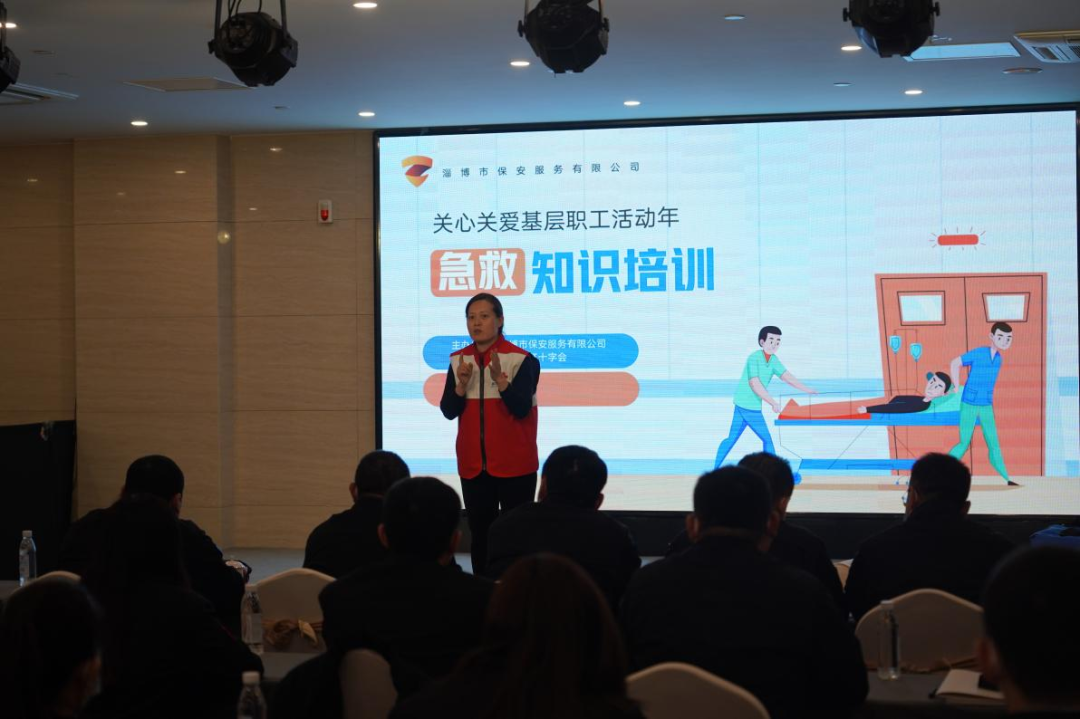 本次培訓邀請淄博市紅十字會專業(yè)人員擔任授課老師,針對急救的意義、急救的黃金時間、急救時對病人的病情分析和處理方法等做了詳細介紹,并通過人物模型現場演練,講解了心肺復蘇的操作過程、AED的正確操作方法和氣道異物梗阻正確處理辦法。經過生動的講解和實地操作,為學員們帶來了一堂實用的應急救護知識培訓。