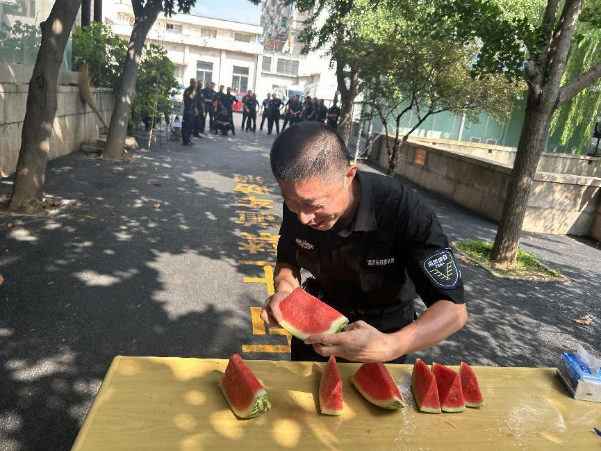 活動(dòng)設(shè)有“大象轉(zhuǎn)圈”、“吃西瓜比賽”等項(xiàng)目,隊(duì)員們以車組為單位進(jìn)行了激烈的角逐,大家一邊享受比賽的激情一邊品嘗西瓜的清爽,樂(lè)趣無(wú)窮。最終有兩組隊(duì)伍獲得優(yōu)勝獎(jiǎng),隊(duì)長(zhǎng)張波將清涼解暑的冷飲送到獲獎(jiǎng)隊(duì)員手中,同時(shí)叮囑大家注意飲食,適當(dāng)補(bǔ)充淡鹽水,不要貪涼,保持夏季健康,以最好的狀態(tài)投入勤務(wù)工作。
